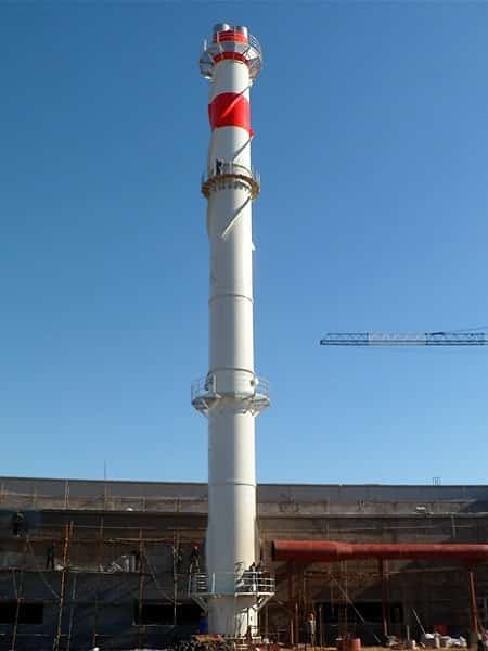 對于無隔熱層的雙層不銹鋼煙囪,在其底部2m高度范圍內,應對煙囪采取外隔熱措施或者設置防護欄,防止燙傷事故。